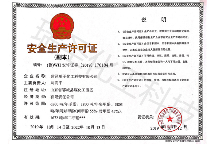瑞圣化工資質(zhì)證書(shū)展示